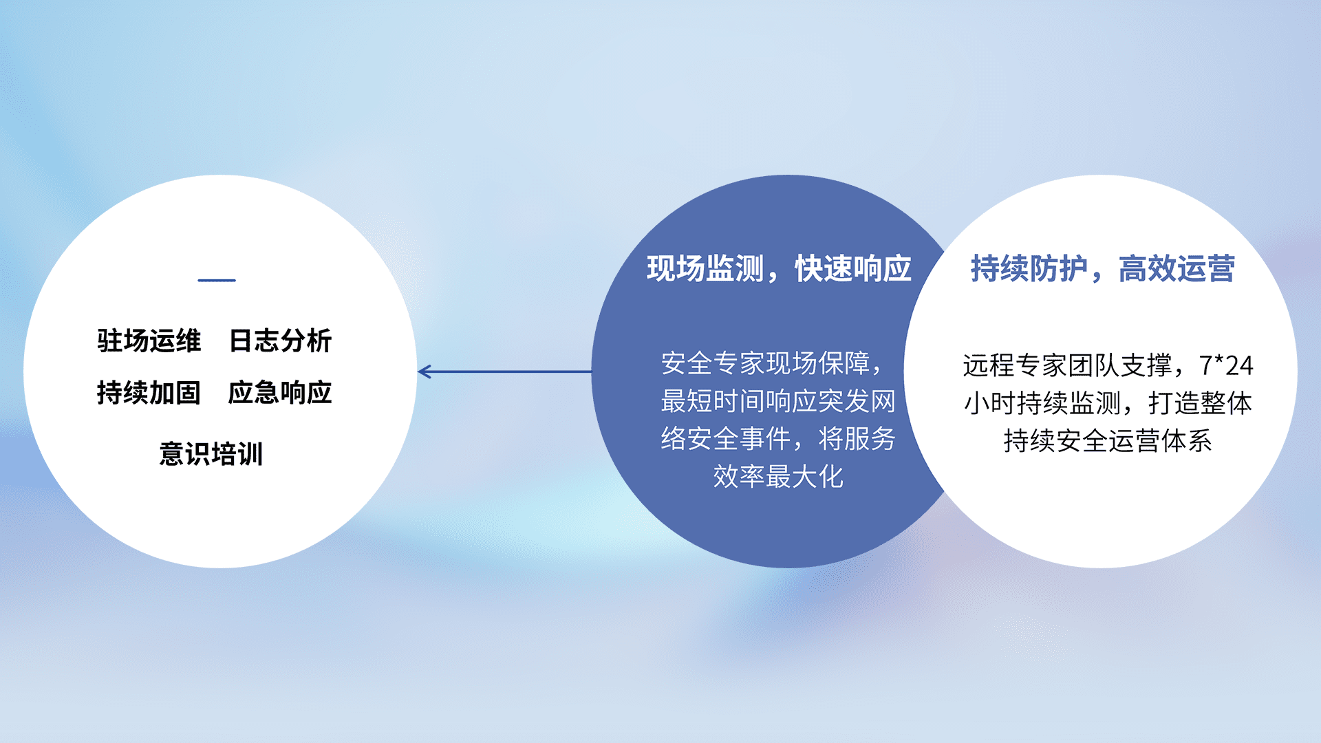 针对客户行业特性,,,提供专属的一站式安全管理服务,,帮助客户全面感知网络空间威胁,,,,通过安全专家的线上、、线下防护支持,,,实现风险闭环,,,,将安全保障常态化,,,为客户打造常态化安全运维运营服务。。。。